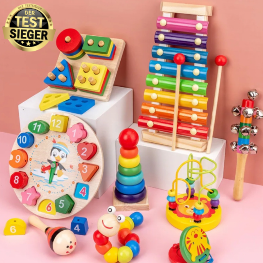 9-in-1 Montessori Holzspielzeug Set für Babys und Kleinkinder