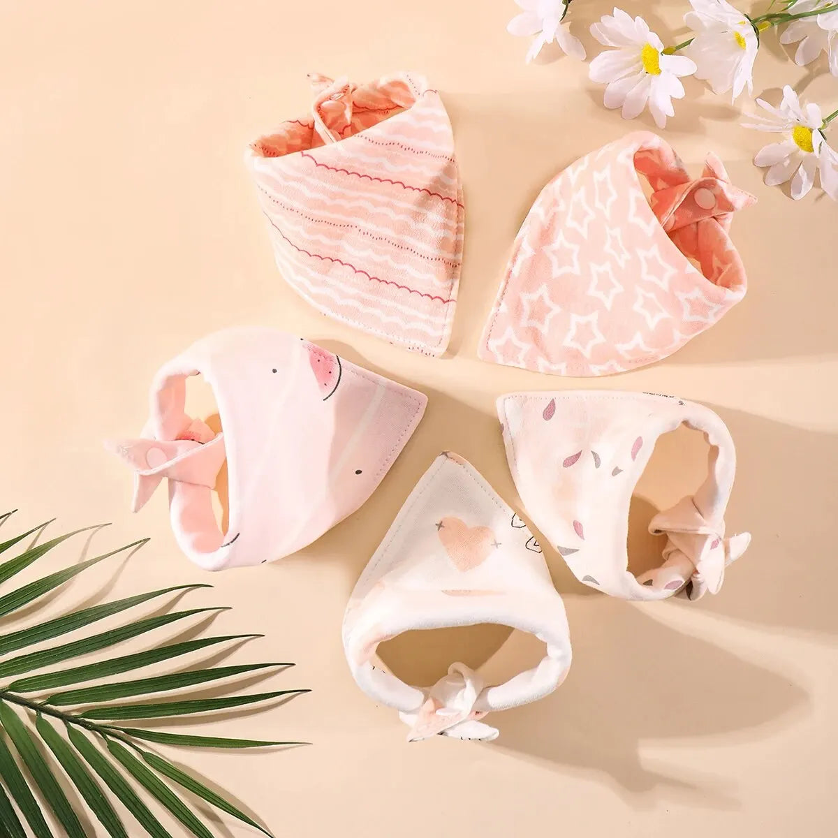 5er Set Sabberlätzchen und Dreieckstücher aus weicher Baumwollmischung – Praktisch und sanft zur Babyhaut